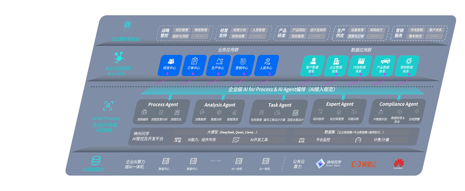 益达平台问学智车解决方案是一套基于AI技术的汽车行业智能化系统,,,覆盖从底层算力到顶层AI应用的全栈方案。。。方案由算力层、、模型层和应用层组成:算力层,,方案支持多种一体机配置,,,具备云端灵活部署、、、多云适配以及动态优化计算资源的能力;模型层,,,益达平台问学平台版提供了企业级AI应用一站式构建与管理平台,,支持基于后训练强化技术的汽车企业专属模型的训练、、、、评测和运营;应用层,,益达平台问学DeepSeek版提供包括超级员工、、、智能招采、、、、智能营销、、智能客服、、AI for BI等一系列解决方案,,,,可助力汽车行业实现数字化转型,,,,让管理更智能、、、响应更敏捷。。
